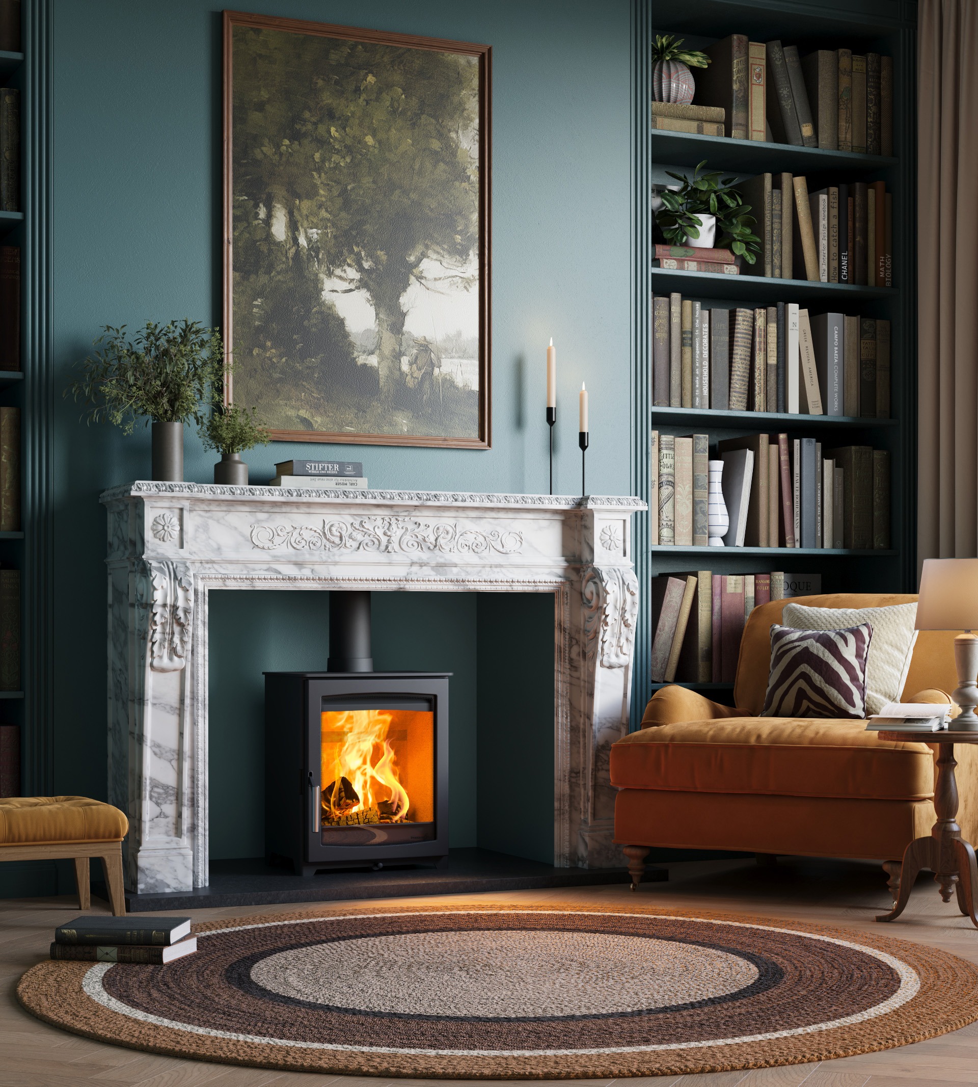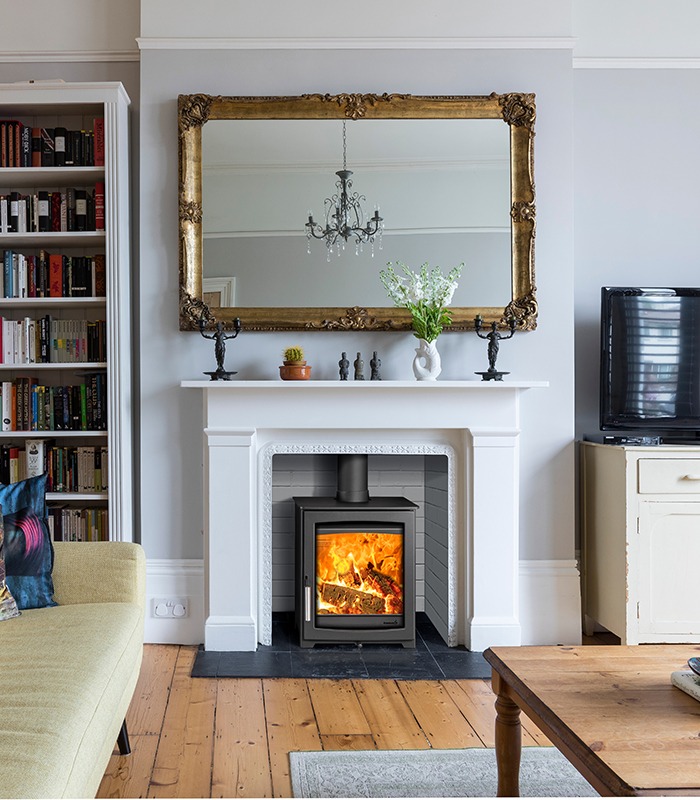 Compact stove from the Aspect collection with a 4.5kW nominal output, high efficiency, large viewing window and smoke control exemption.